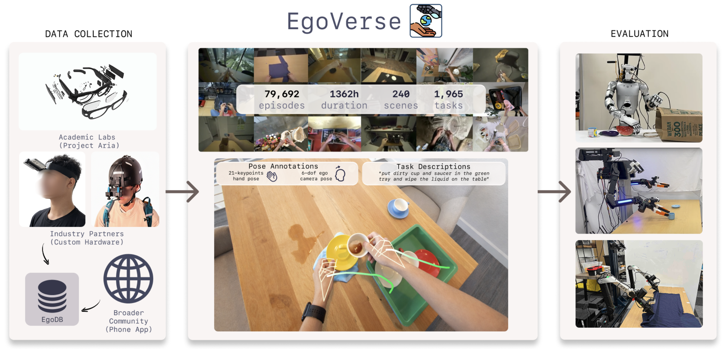 EgoVerse is a platform for human data-driven robot learning that unifies data collection,